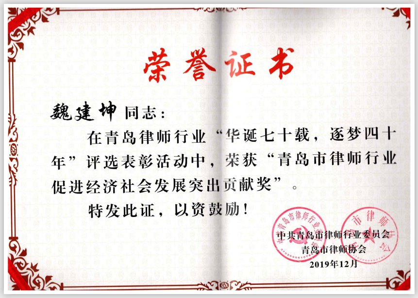 2020-04-01为充分发挥律师行业先进典型的示范引领作用,表彰先进,树立典型,展示我市律师队伍为法治建设和经济社会发展作出的突出贡献,弘扬行业正能量,扩大社会影响力。近日,中共青岛市律师行业委员会印发《关于青岛律师行业“华诞七十载,逐梦四十年”活动的表彰决定》和《关于表彰市律师行业先进基层党组织优秀共产党员和优秀党务工作者的决定》。其中,山东道安律师事务所党支部再获“青岛市律师行业先进基层党组织”荣誉称号、魏建坤主任获“青岛市律师行业促进经济社会发展突出贡献奖”荣誉称号、合伙人郑伟律师获评“青岛市律师行业优秀共产党员”。