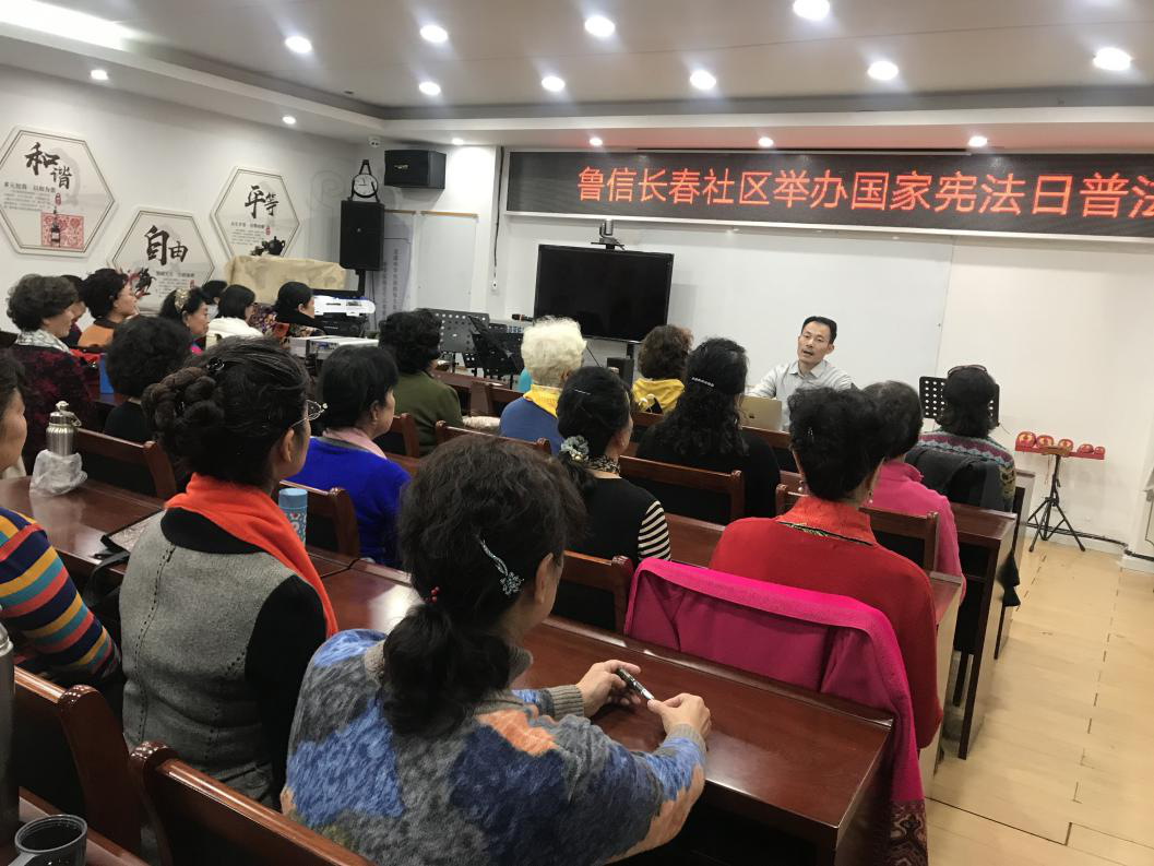 12月3日下午,山东道安律师事务所在金家岭街道鲁信长春社区举办国家宪法日普法讲座活动。杨从武律师主要从中国宪法的制定、修改的历史沿革,2018年宪法修正案的内容、作用及重大意义,贯彻实施宪法过程中应注意的问题等三个方面进行了讲解,社区居民四十余人参加了本次讲座。